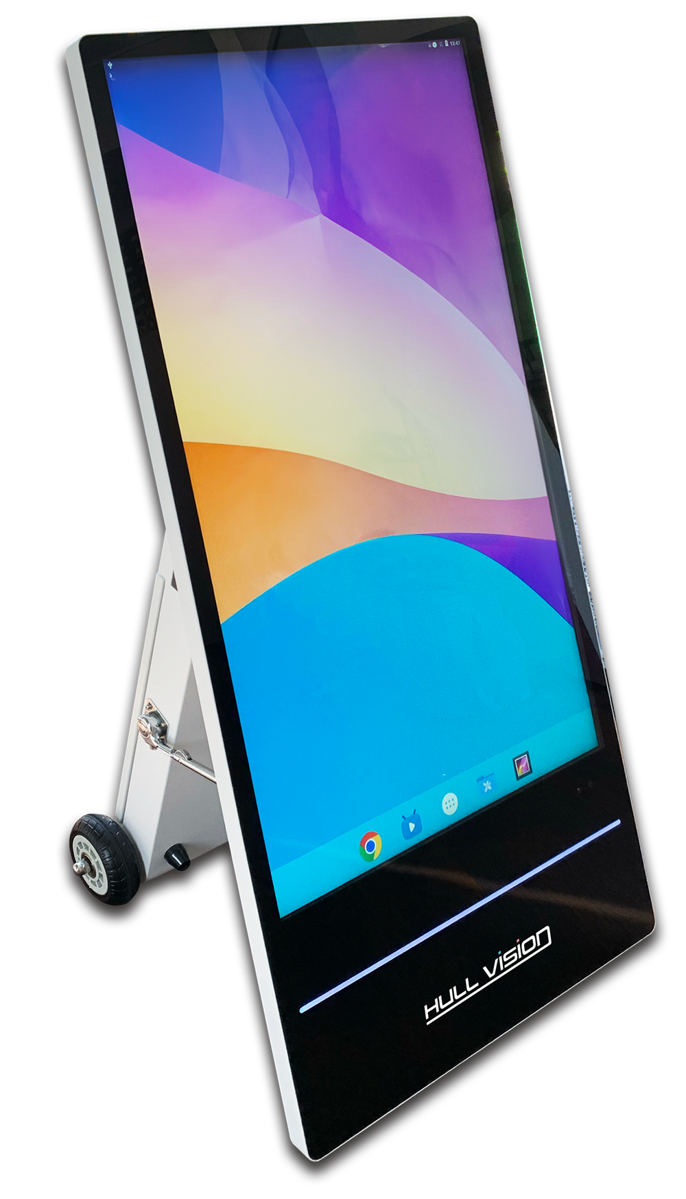 バッテリー内蔵のコードレス運用で、電源のない場所でも自由自在に設置可能。防水・防塵、高輝度43インチモニターにより、雨天や日中の屋外でも鮮明な表示を実現します。キャスター付きで移動も簡単。イベント会場を華やかに演出し、効果的な情報発信をサポートします。