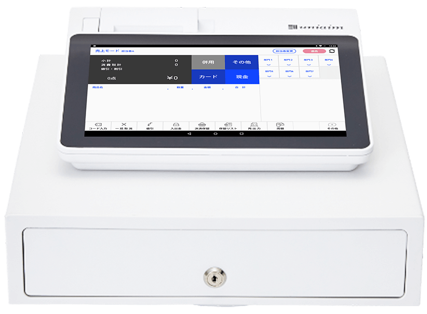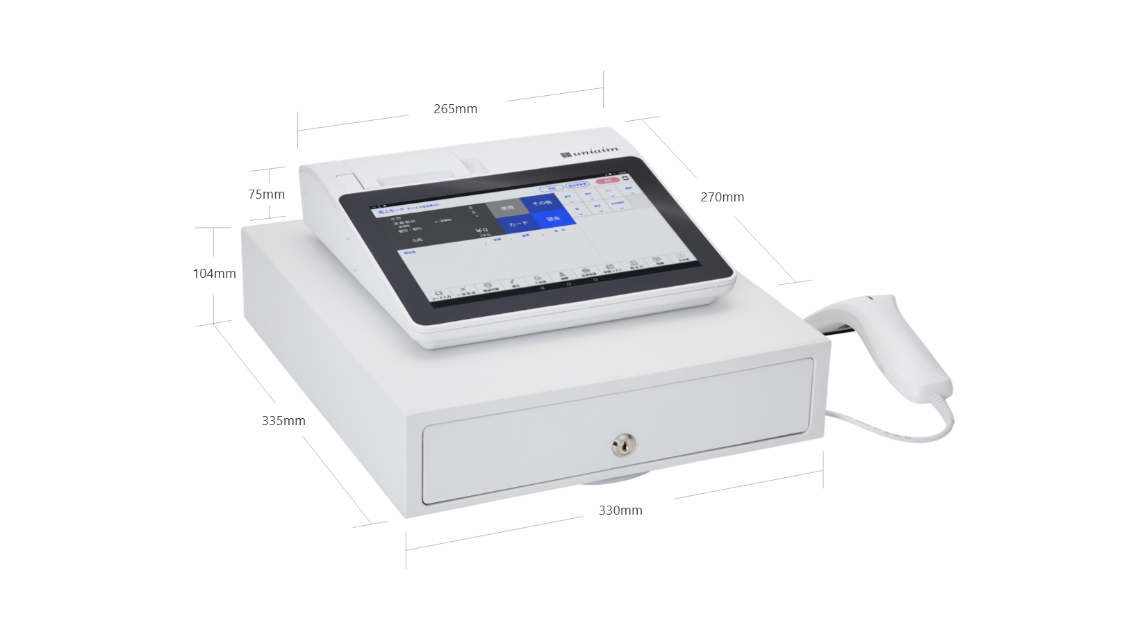 リアルタイムで売上や在庫状況を把握可能でスピディーな運営が可能です。 スキャナー・ドロアー・プリンター全て一体型の端末を採用し、 iPadを用いたPOSレジでは実現できない安定性と 徹底的にこだわり抜いた処理スピードを実現いたします。 100台規模の大量導入にも対応しております。