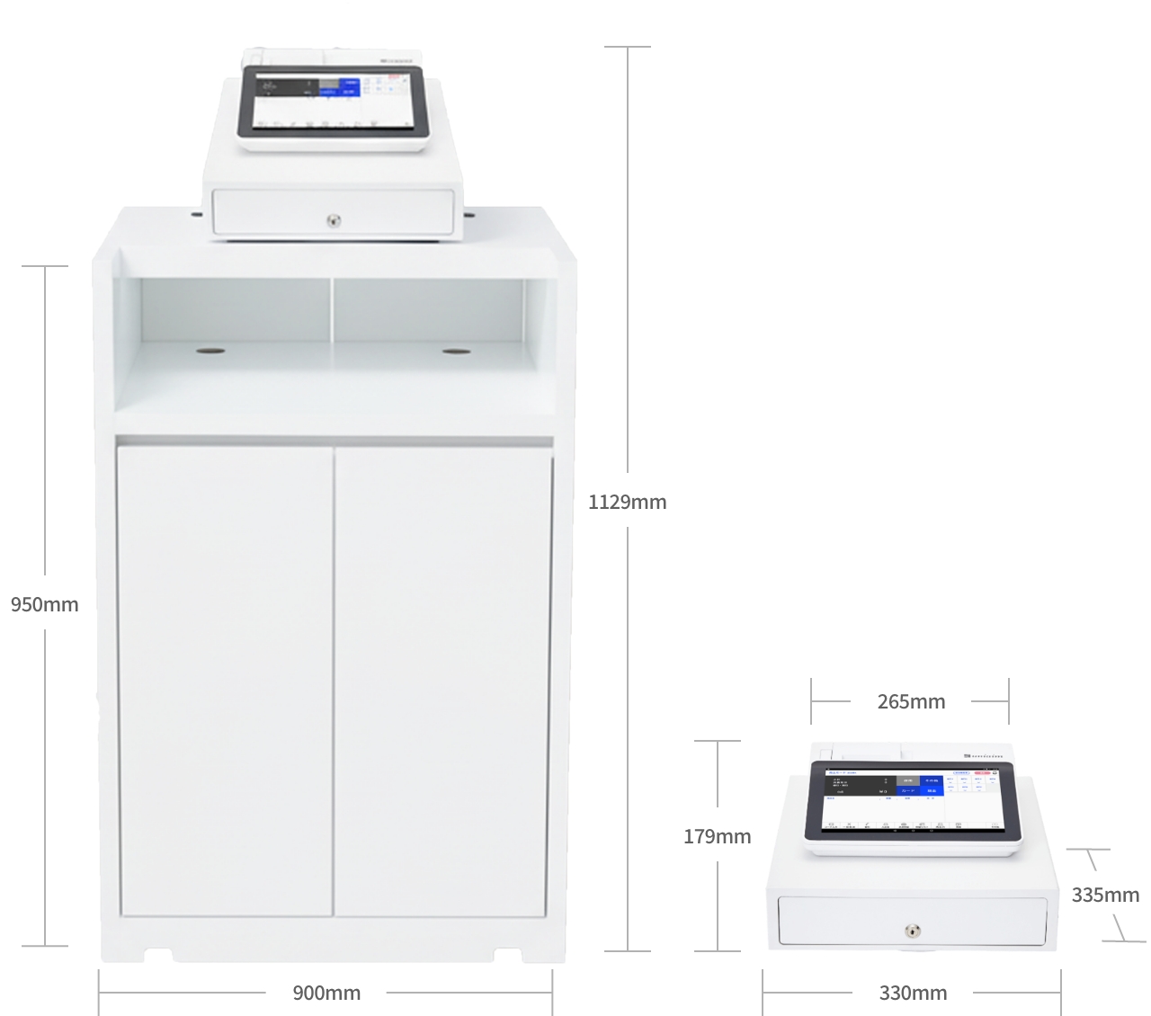 レジ本体:幅263mmx奥行265mmx高さ74mm